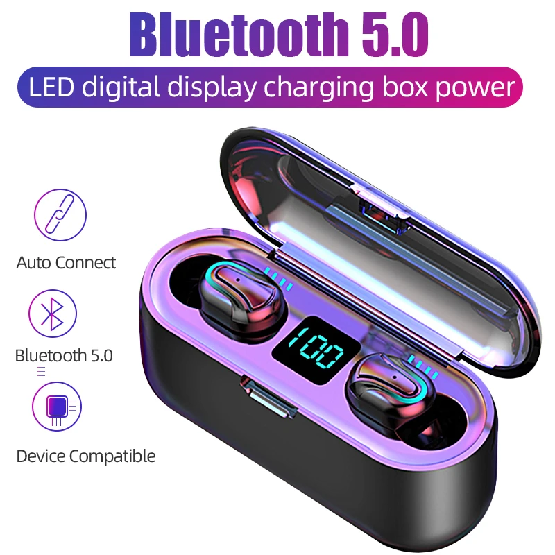 Беспроводные наушники bluetooth с 2000 мАч зарядным чехлом светодиодный дисплей TWS беспроводные наушники гарнитура для телефона с микрофоном