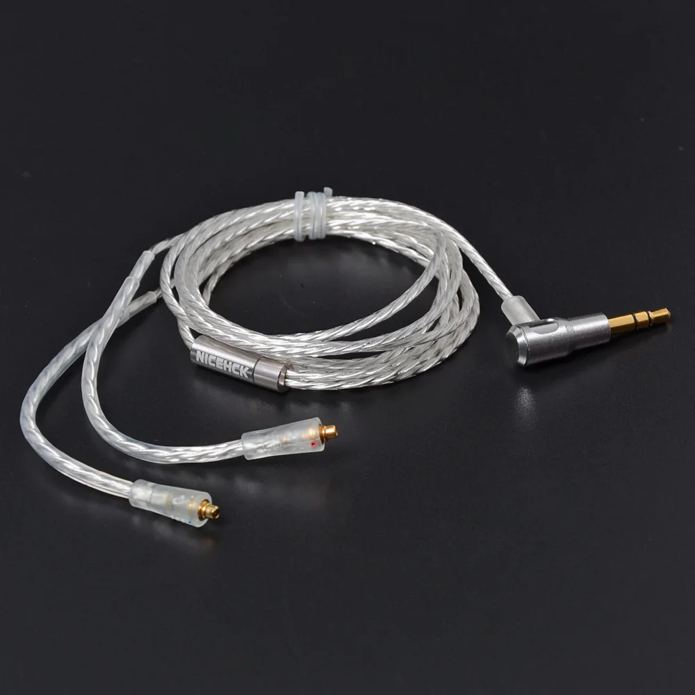 NICEHCK 3,5 мм кабель MMCX Высокое качество L Bendling плагин Покрыно Серебристые наушники обновления Применение для SE535 SE846 DT600 DT500 Ушные крючки