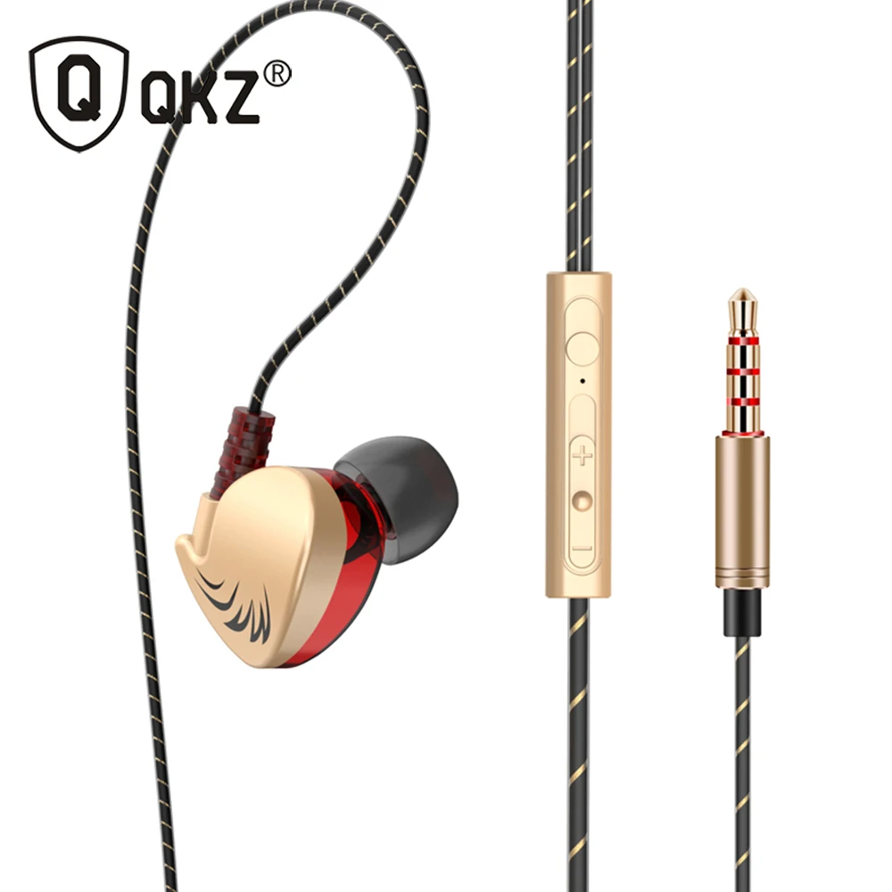 Натуральная QKZ KD7 наушники двойной драйвер спортивные наушники 3,5 мм Jack Гарнитуры Hands Free с микрофоном Музыка наушники для всех телефонов ПК