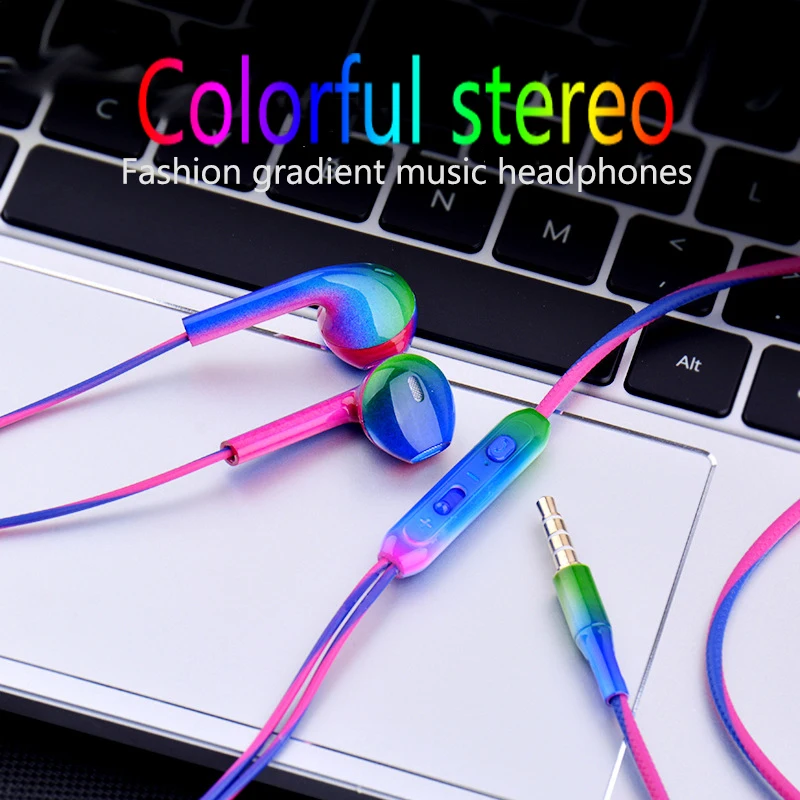 JS 3,5 мм Проводные Наушники Модные градиентные музыкальные наушники Стерео Игровые наушники с микрофоном для iPhone Xiaomi huawei Спортивная гарниту...