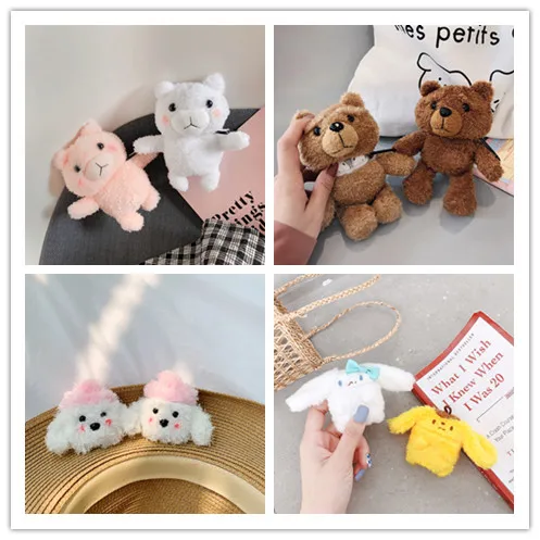 3D плюшевая кукла чехол для наушников для AirPods чехол милые пушистые собаки фрукты Мультяшные наушники чехол для Apple Air pods2 Earpods чехол