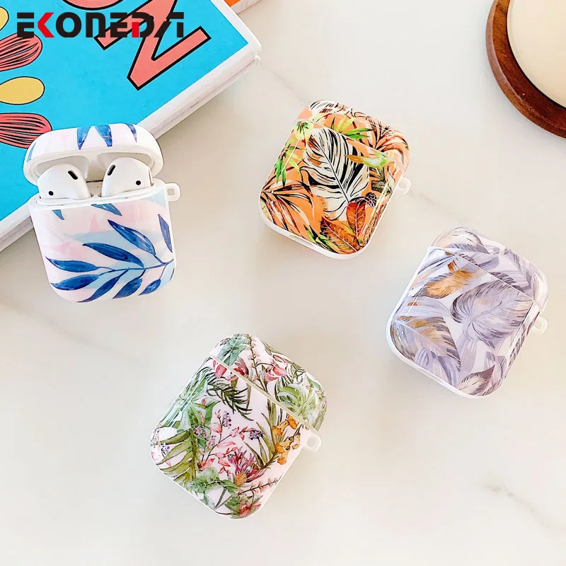 EKONEDA милый чехол с рисунком листьев для Airpods 2 мягкий силиконовый зарядный чехол для Airpod чехол s защитный чехол
