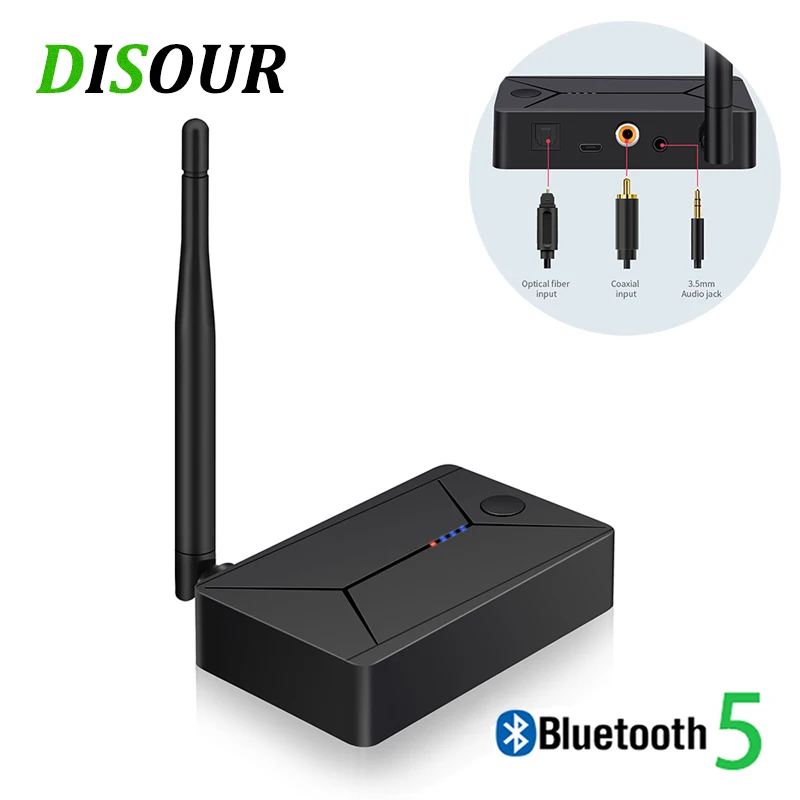 DISOUR Bluetooth 5,0 аудио передатчик 3,5 мм AUX коаксиальный Оптический Разъем стерео беспроводной адаптер для ТВ ПК Bluetooth колонки