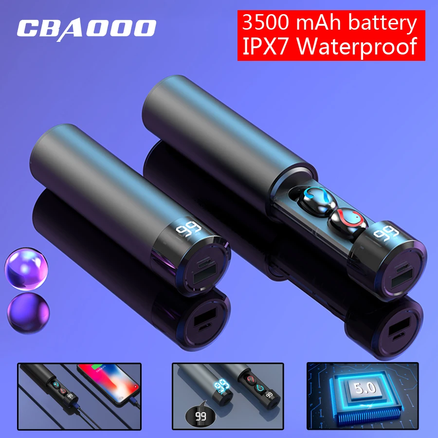 CBAOOO TWS 5,0 Bluetooth 8D стерео наушники беспроводные наушники IPX7 водонепроницаемые наушники мини гарнитура с 3500 мАч power Bank