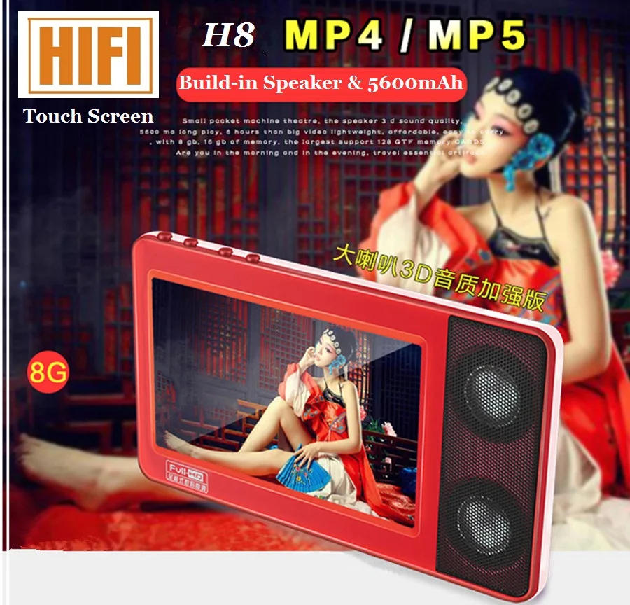 Портативный мини MP4 плеер с двумя динамиками 8 Гб MP4 видео плеер сенсорный экран без потерь HiFi музыкальный плеер 5600 мАч батарея TF карта