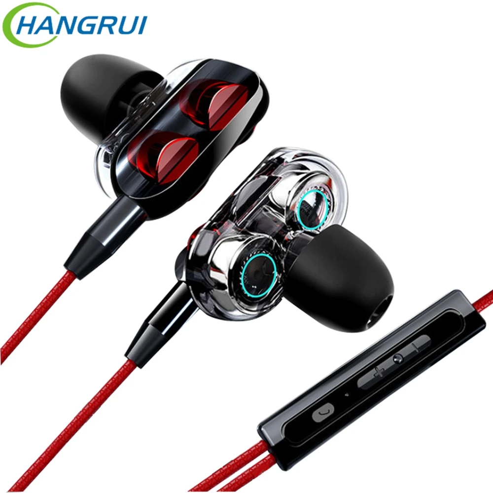 Hangrui двойной привод стерео проводные наушники Спортивная гарнитура с микрофоном мини наушники Handsfree Наушники для iPhone Samsung XiaoMi Новинка