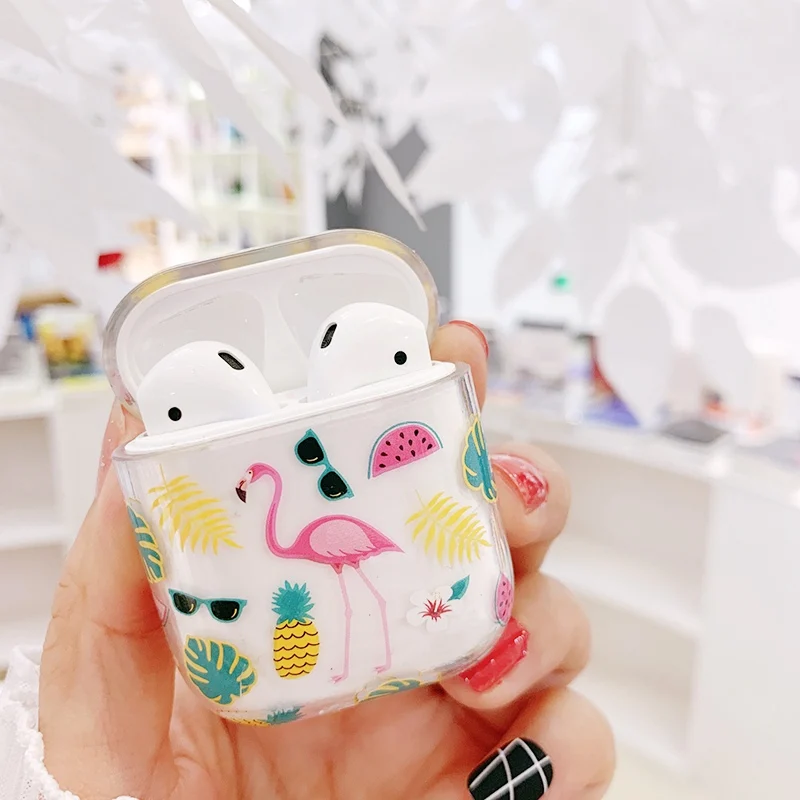 Чехол для AirPods Роскошный прозрачный защитный чехол с изображением фламинго Жесткий Чехол Для Air pods 2 Bluetooth чехол для наушников