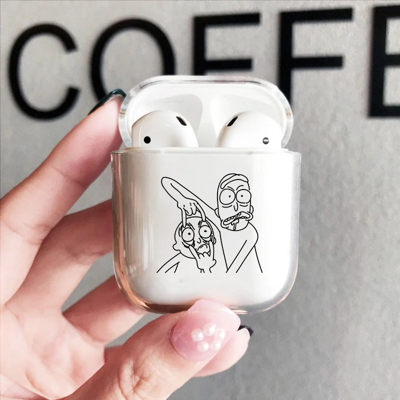 Милый чехол для airpods, чехол с рисунком Рика и Морти, прозрачный чехол с Bluetooth для наушников Airpods 12, белый мягкий чехол