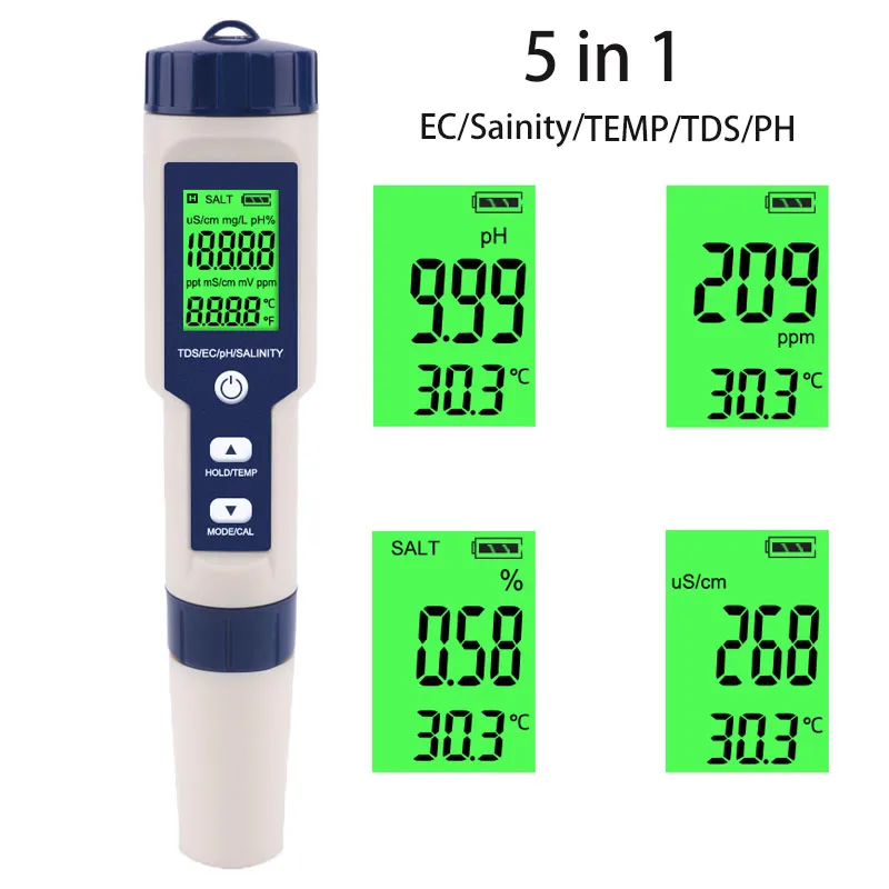Цифровой рН-метр TDS EC Temp тестер солености 5 В1 Salinometer TDS EC Meter термометр количество воды измерительное устройство 30% ВЫКЛ.
