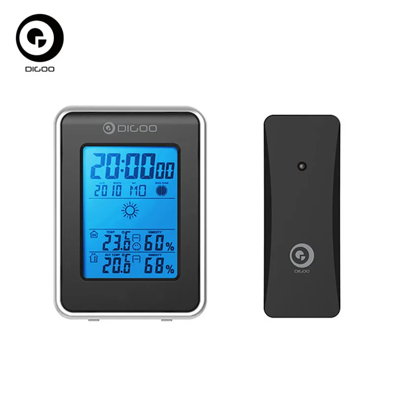 Digoo DG-TH1981 Термометр Гигрометр С Датчиком Синяя Подсветка Погодная Станция Гигрометр Термометр Наружный Прогноз Часы
