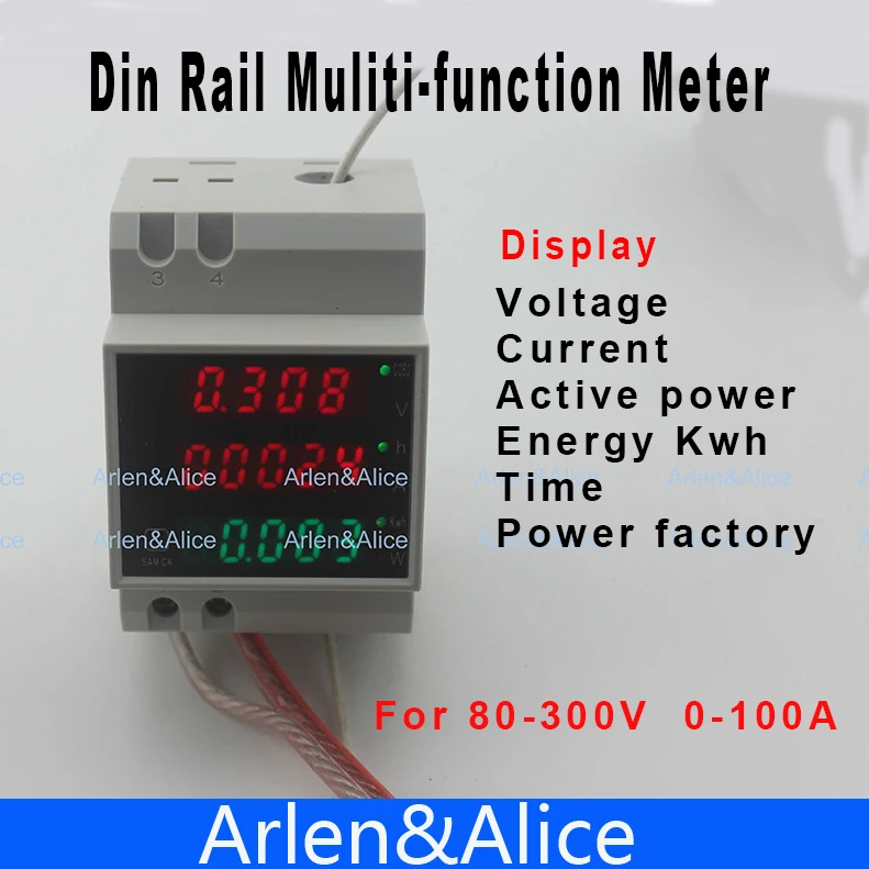 Din-рейку светодио дный Вольтметр Амперметр активной мощности и коэффициент мощности время счетчик энергии Напряжение Ток AC 80-300 В 0-100.0A