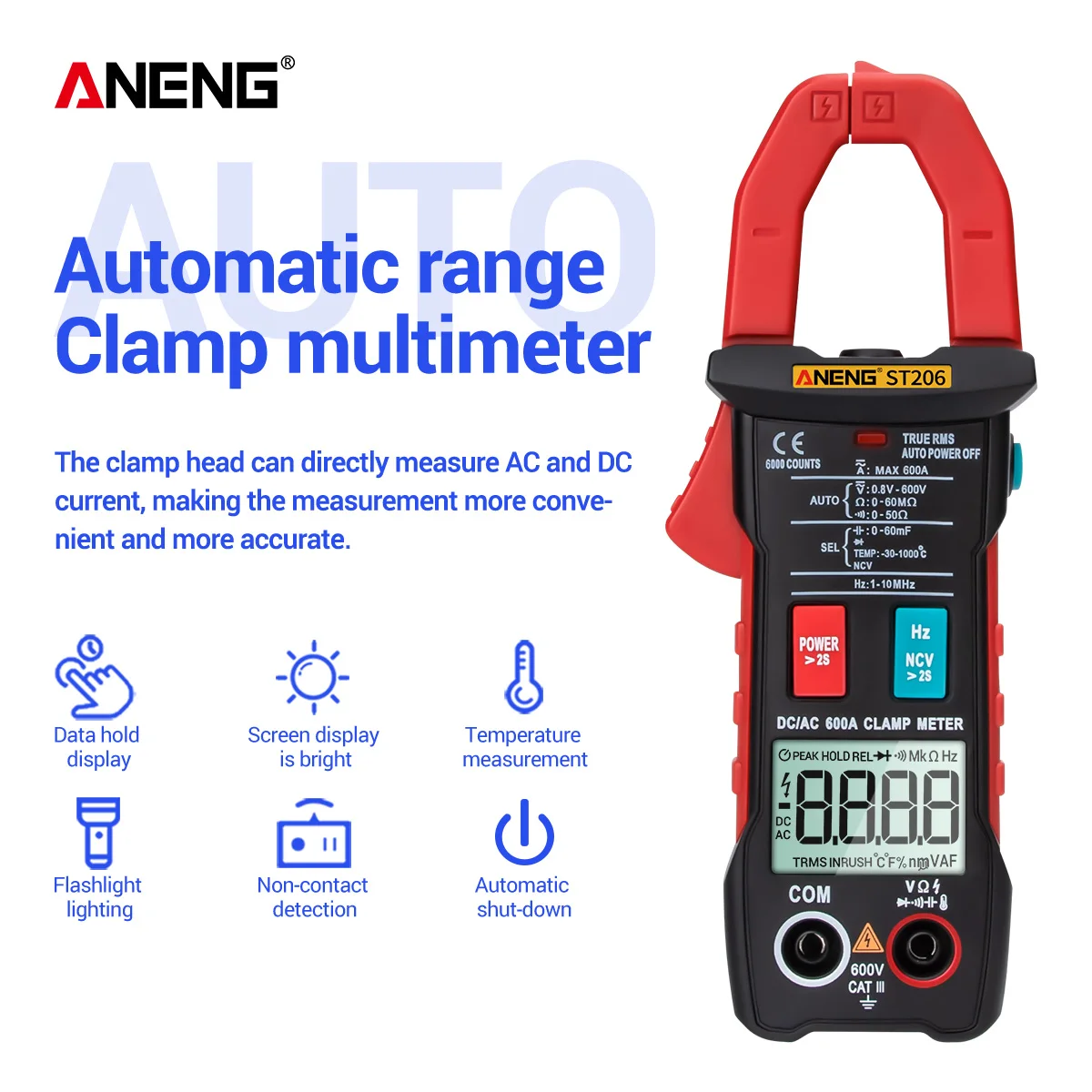 ST206 клещи Цифровой мультиметр 6000 отсчетов True RMS Amp DC/AC Ток зажим тест er измеритель мощности вольтметр тест