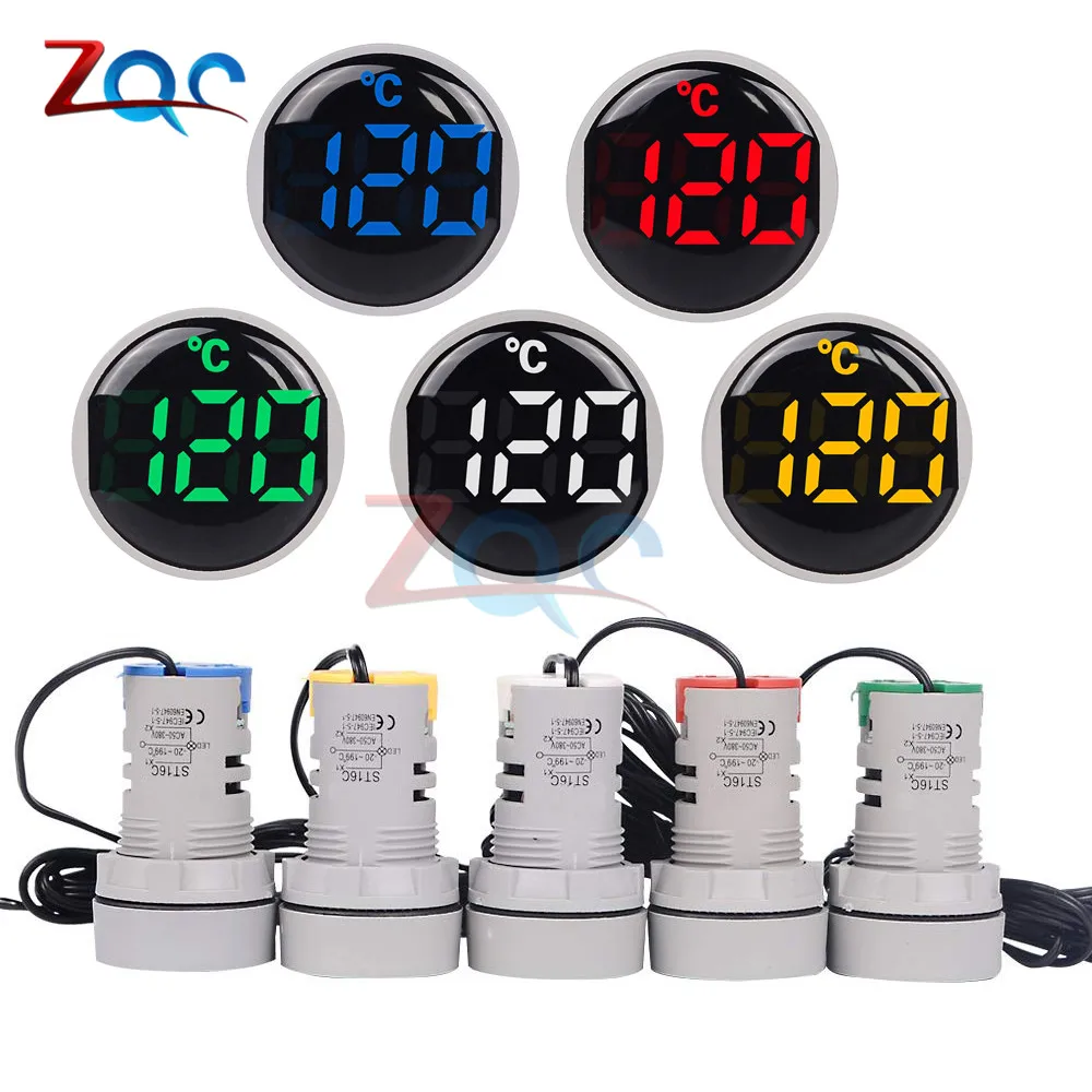 22 мм круглый маленький мини светодиодный свет Дисплей термометр цифровой Температура индикатор переменного тока в переменного тока, 50-380V 220 V-20-120 'с 1 м Сенсор