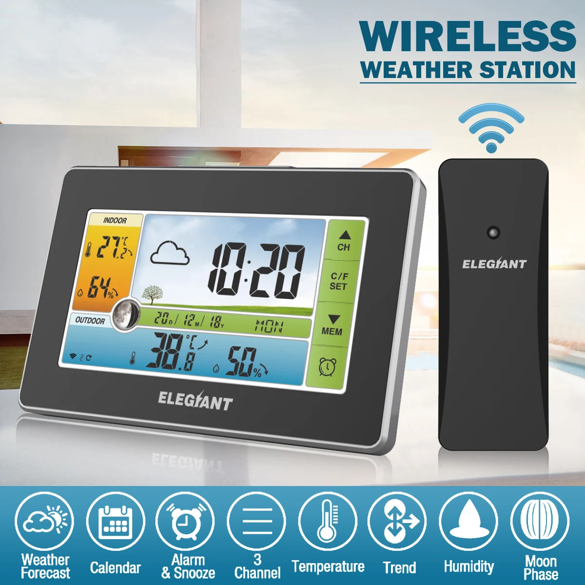 ELEGIANT lcd цифровой сенсорный Метеостанция и открытый датчик влажности температуры инструменты 3CH термометр гигрометр
