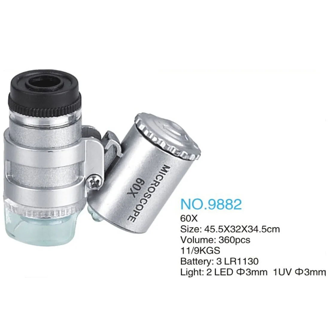 Миниатюрный крючок для рыбалки карман 60X микроскоп Ювелирная Лупа объектив с подсветкой увеличительное стекло 3 светодиода УФ свет