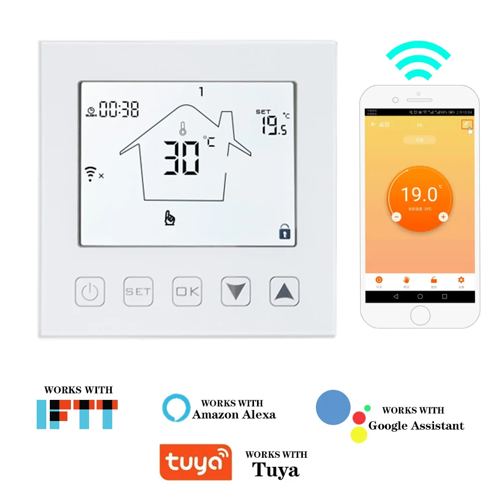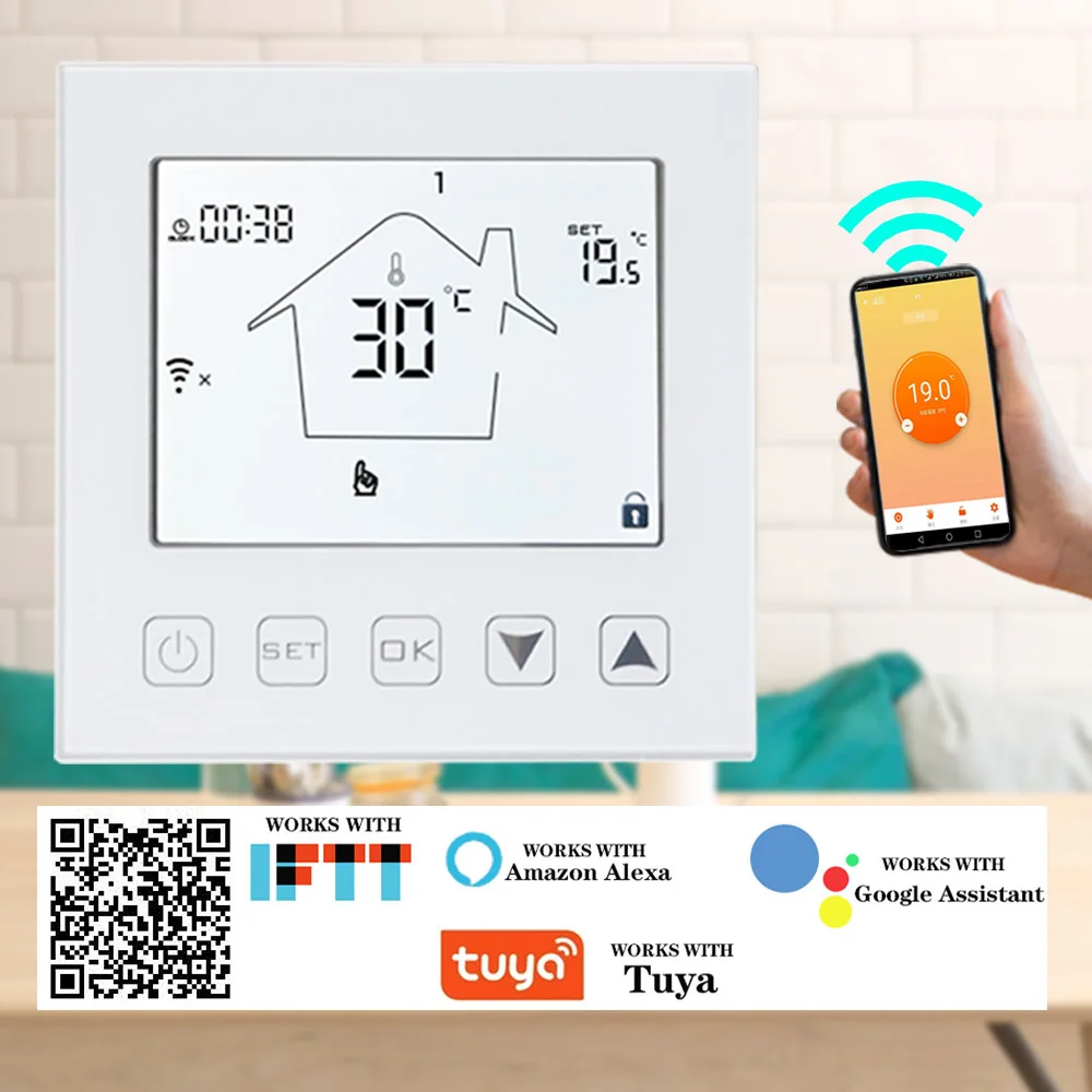 Умный Wi-Fi термостат 16A контроллер температуры Электрический теплый пол обогревающий термостат работает с Echo Google Home Tuya