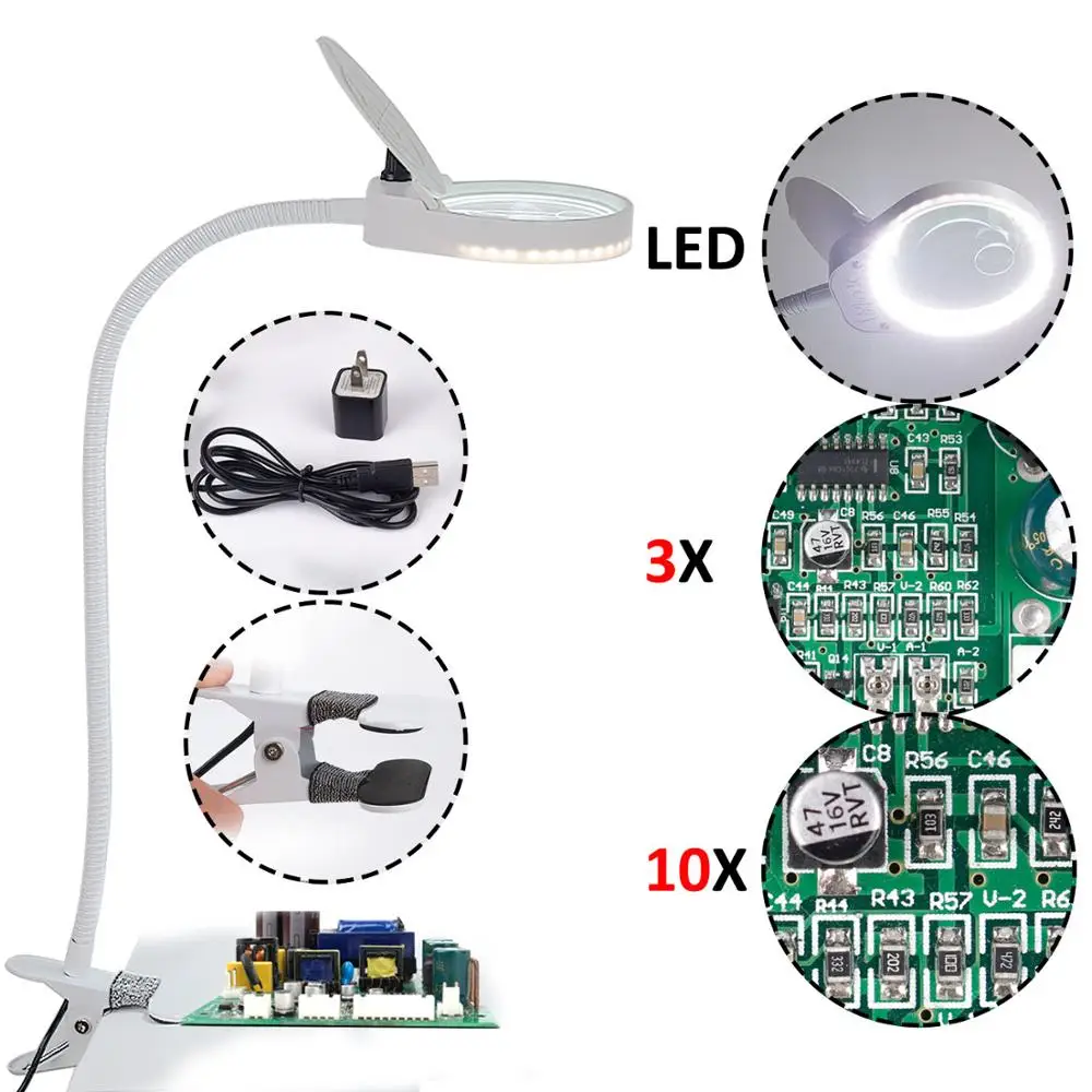 3X 5X USB увеличительное Стекло с светодиодный свет 10X 8X Гибкий Настольный зажим третьей стороны пайки/чтение/Ювелирная Лупа настольная лампа