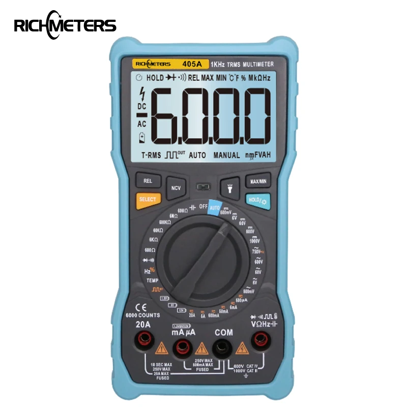 Цифровой мультиметр рихметров 405A True-RMS 20A 6000 отсчетов переменного/постоянного тока напряжения тока Ом температуры Авто/ручная квадратная волна