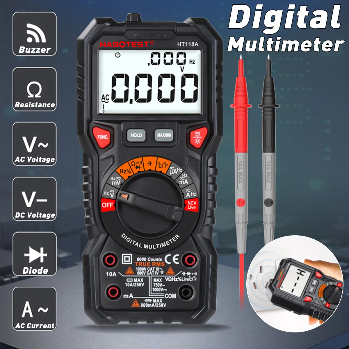HABOTEST ЖК-цифровой мультиметр 6000 отсчетов Автоматический диапазон NCV AC/DC измеритель напряжения задний светильник безопасность Ручные Цифров...