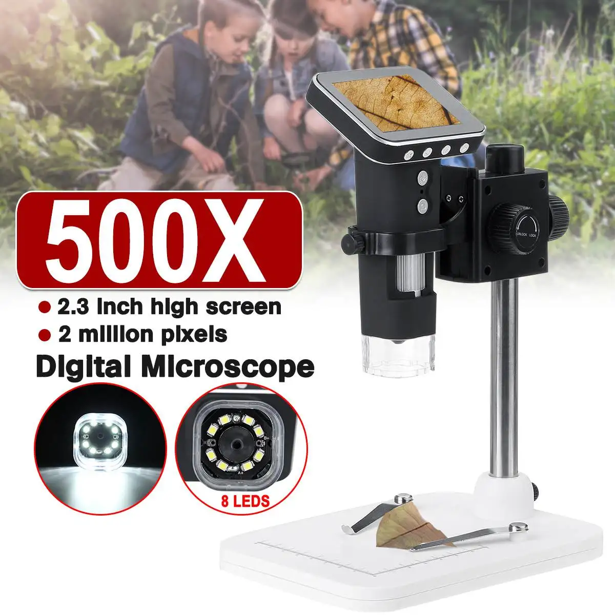 500x2,0 Мп USB цифровой электронный микроскоп 2,3 "ЖК-дисплей Дисплей цифровой 8 светодиодный регулируемый держатель Лупа электронный эндоскоп