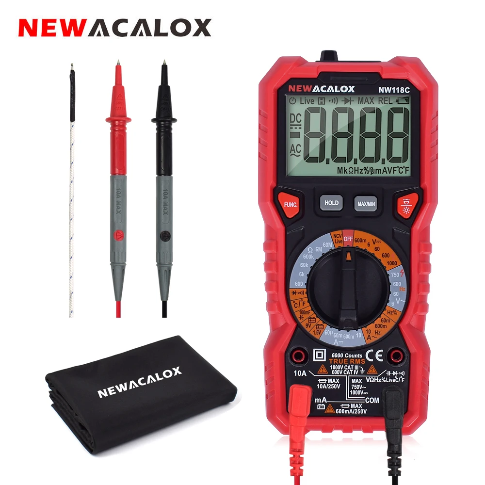 NEWACALOX NCV подсветка тестер температуры цифровой мультиметр портативный AC/DC напряжение тока мультиметр транзистор измерительный инструмент