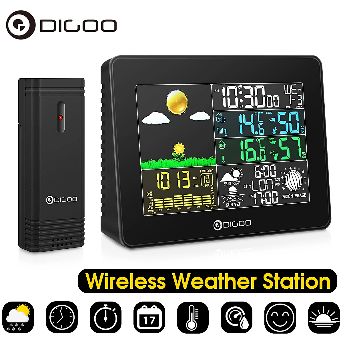 Digoo беспроводной большой экран Цвет Цифровая метеостанция Температура Влажность Открытый термометр Прогноз сенсор будильник