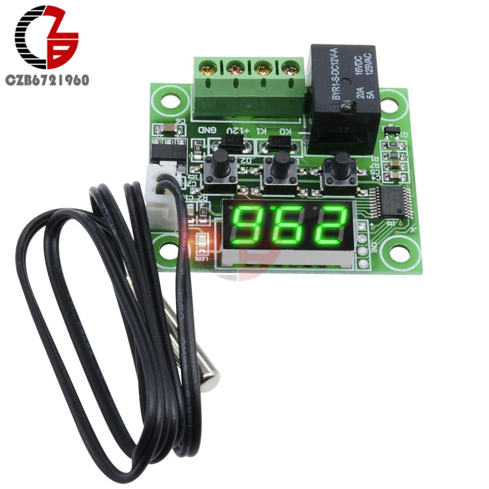W1209 светодиодный цифровой термостат регулятор температуры регулятор постоянного тока 12 В зеленый дисплей Крытый инкубатор контроль нагрев...