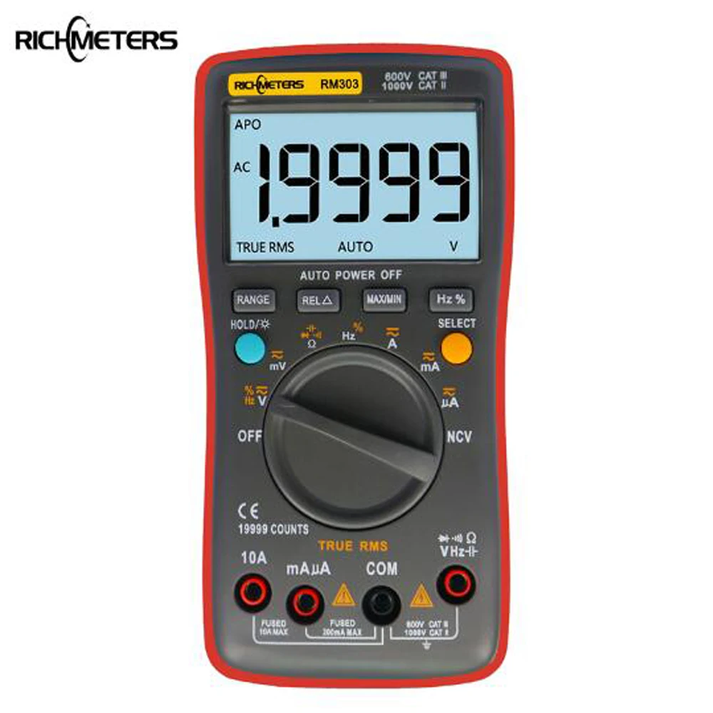 RM303 Цифровой мультиметр True-RMS 19999 отсчетов NCV частота 200 м сопротивление автоматическое отключение переменного тока постоянного напряжения Амперметр тока Ом