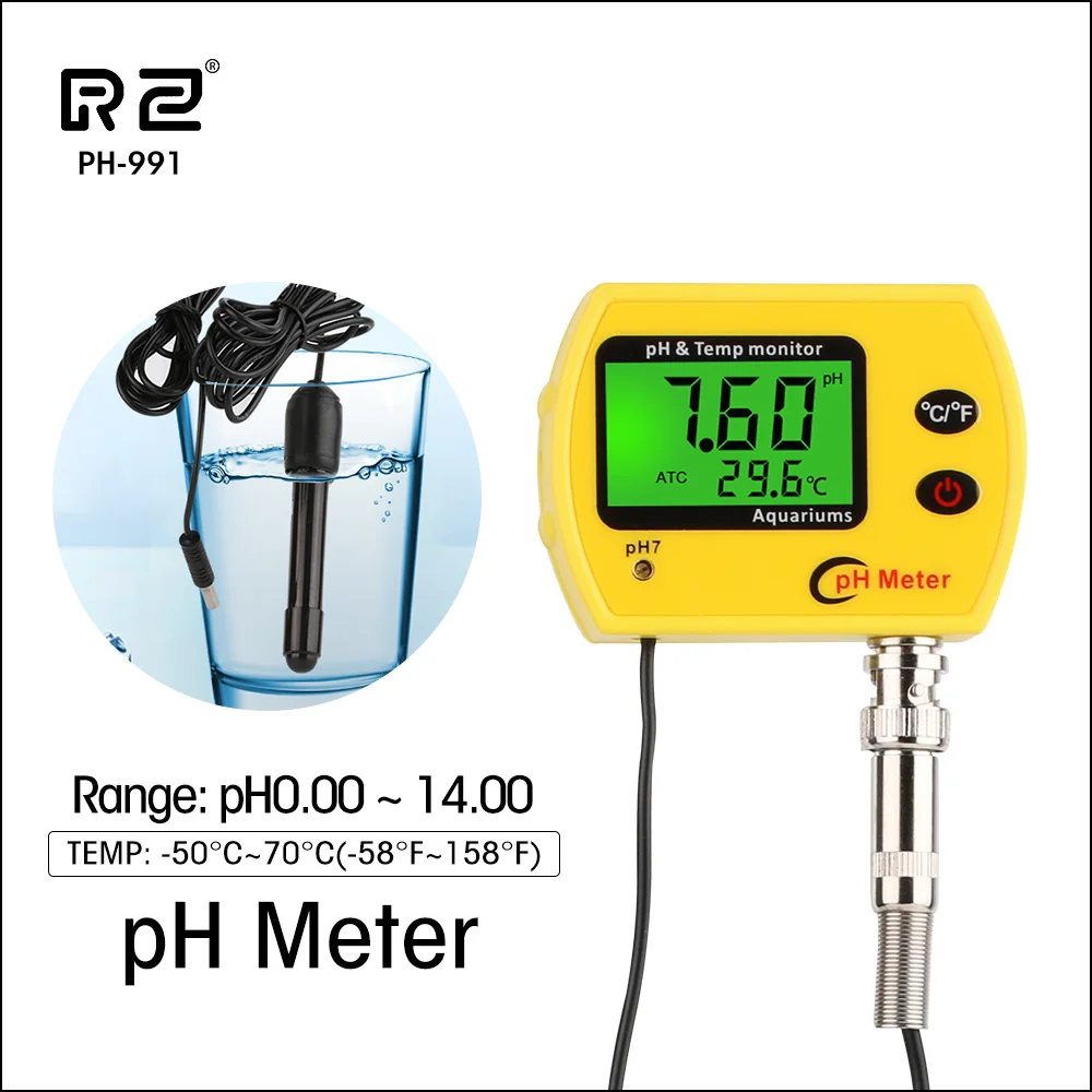 RZ рН-метр тестер прочный Подкислитель инструмент температурный контроль качества воды для аквариума плавательный бассейн вода PH-991With подсв...