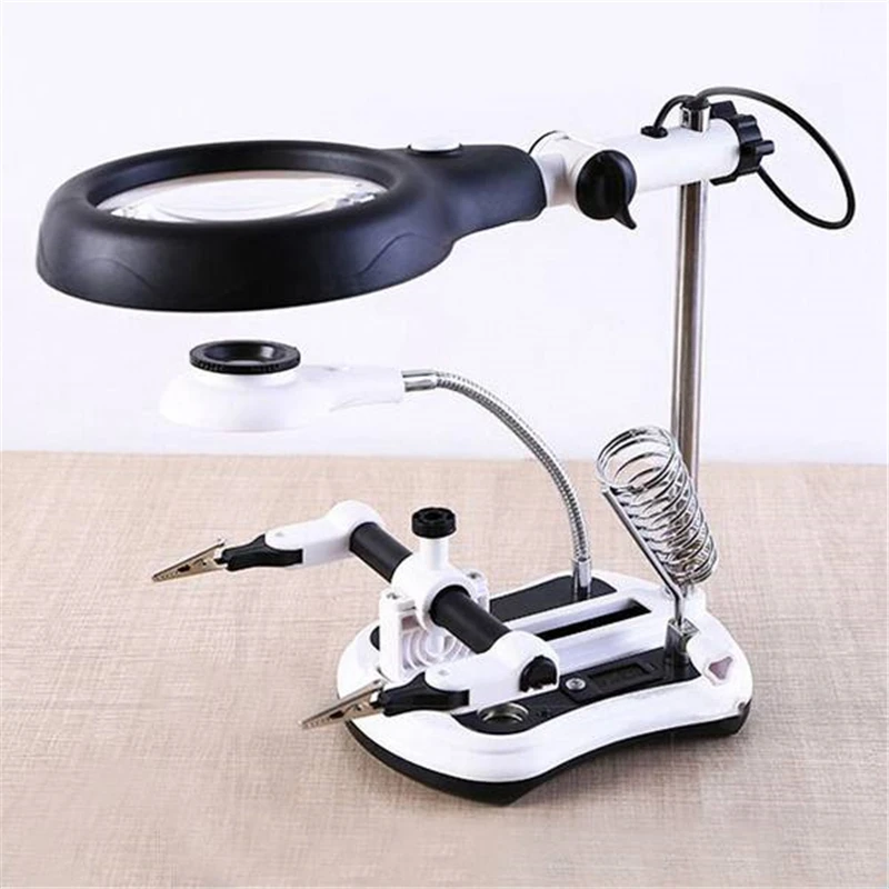 Штепсельная вилка США DIY паяльная настольная Лупа со светодиодной подсветкой Вспомогательный зажим для сварки третьей рукой 2 зажима аллигатора лупы инструменты