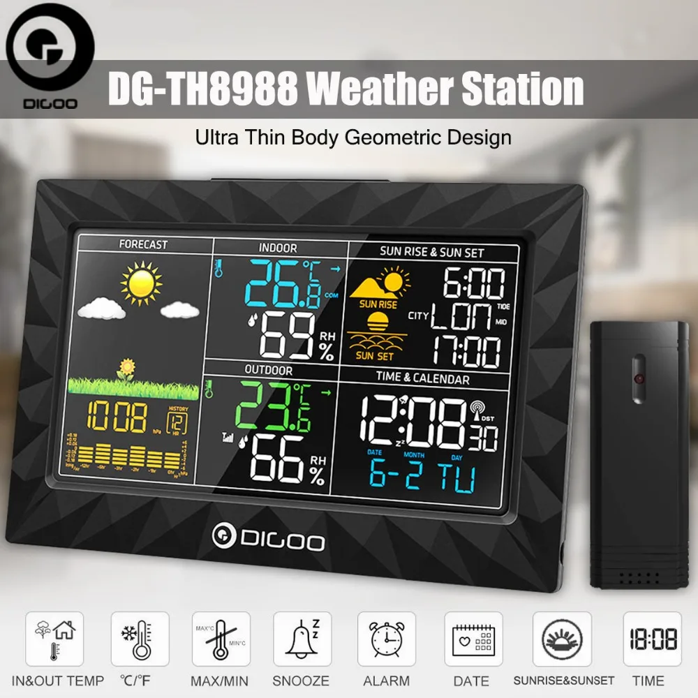 DIGOO DG-TH8988 Метеостанция Восход закат дисплей открытый комнатный термометр и гигрометр Температура Влажность удаленного сенсор