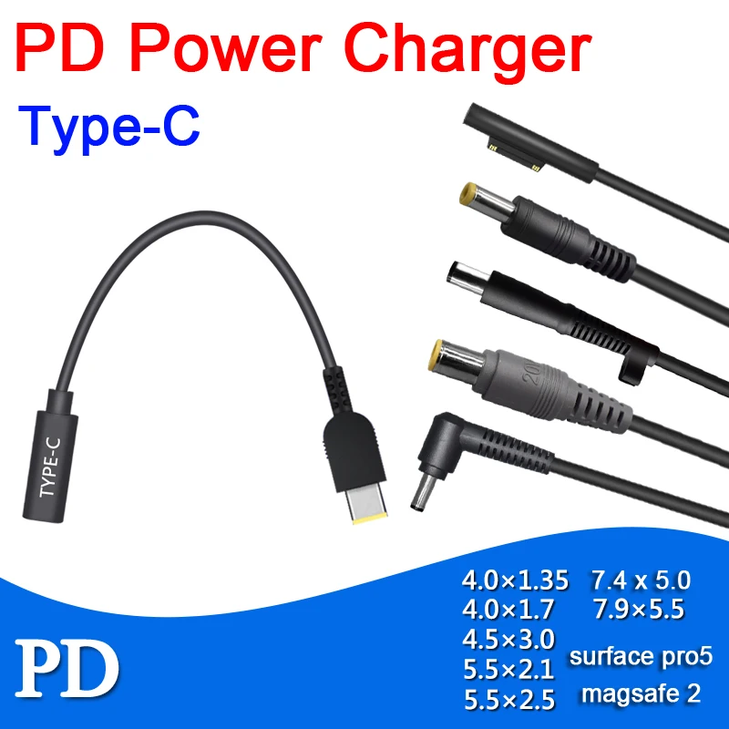 PD Decoy триггер Быстрая зарядка конвертер Кабель-адаптер USB TYPE-C в DC разъем для зарядки ноутбука поверхность magsafe dell HP