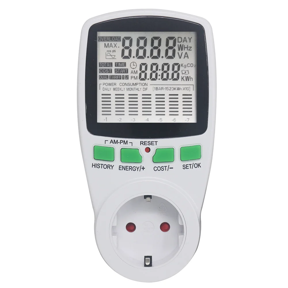 ЕС цифровой измеритель энергии разъем вольтметр переменного тока Амперметр Частота время стоимость монитора коэффициент мощности Дисплей