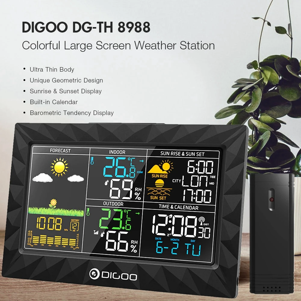 Digoo цифровой Температура Влажность Открытый термометр беспроводной большой экран Цвет Метеостанции Прогноз сенсор будильник
