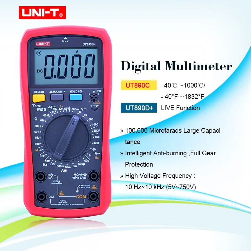 UNI-T UNI T Цифровой мультиметр True RMS UT890C UT890D + ручной диапазон AC DC Частота емкость Температура Тестер Подсветка