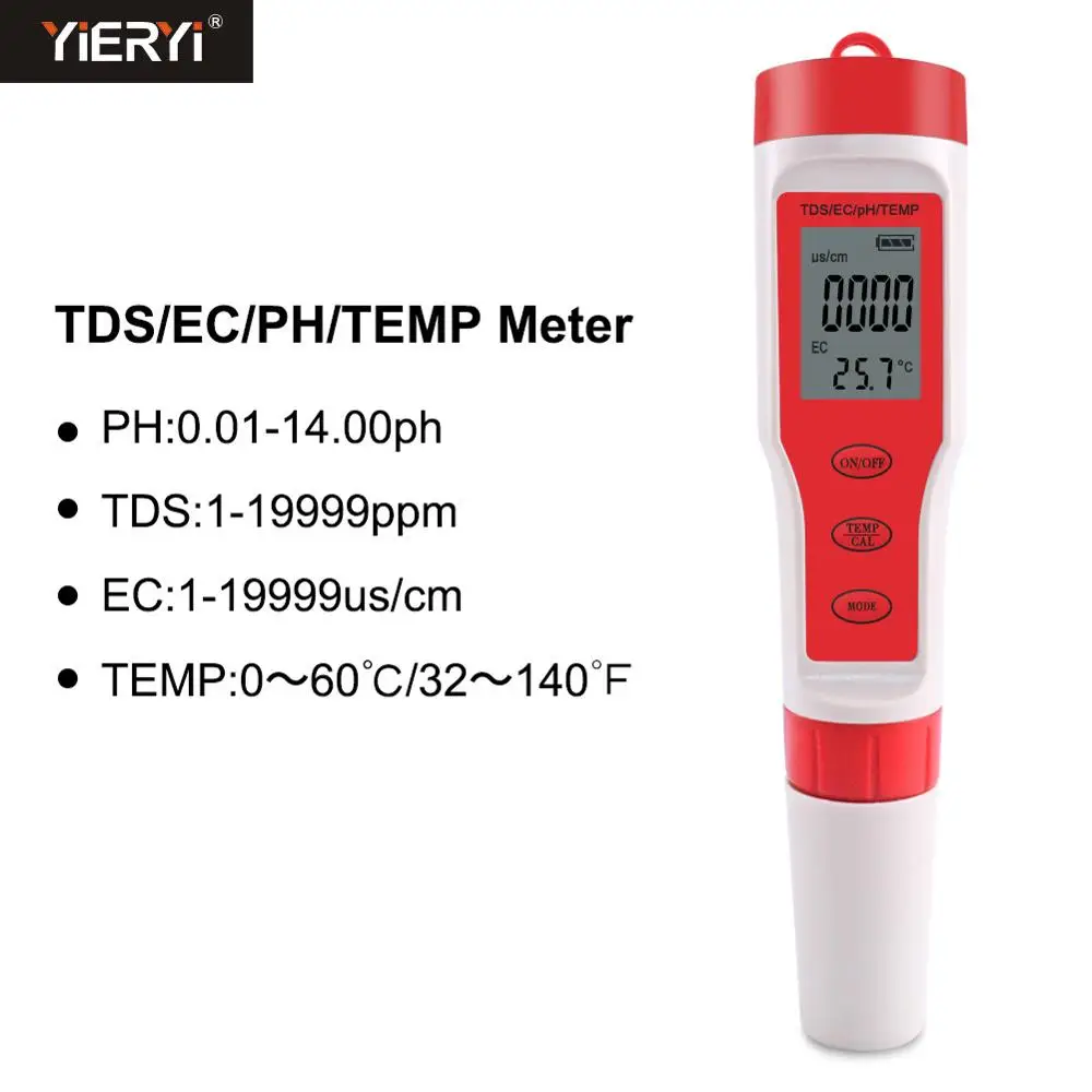 Yieryi 4 в 1 PH/TDS/EC/измеритель температуры цифровой контроль качества воды тестер для бассейнов, питьевой воды, аквариумов