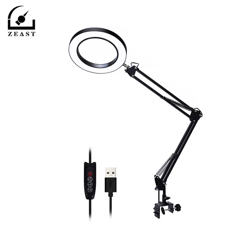 Гибкий Настольный большой 33 см + 33 см 5X USB светодиодный увеличительное стекло 3 цвета с подсветкой Лупа лампа лупа с длинным кронштейном