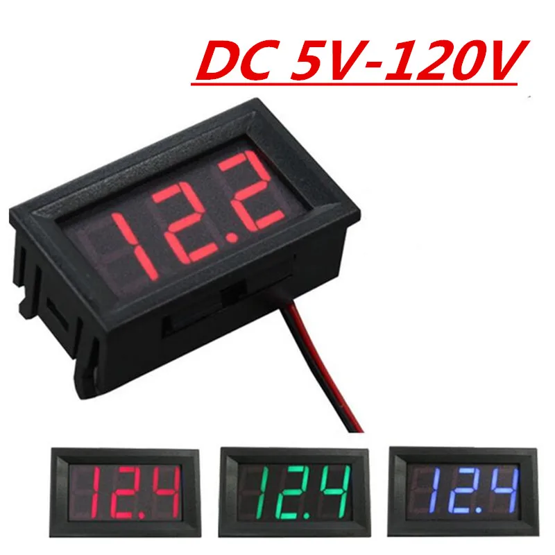 Цифровой вольтметр 5 В-120 В постоянного тока, 2 провода, 0,56 дюйма, светодиодный мини-измеритель напряжения, зеленый, синий, желтый дисплей