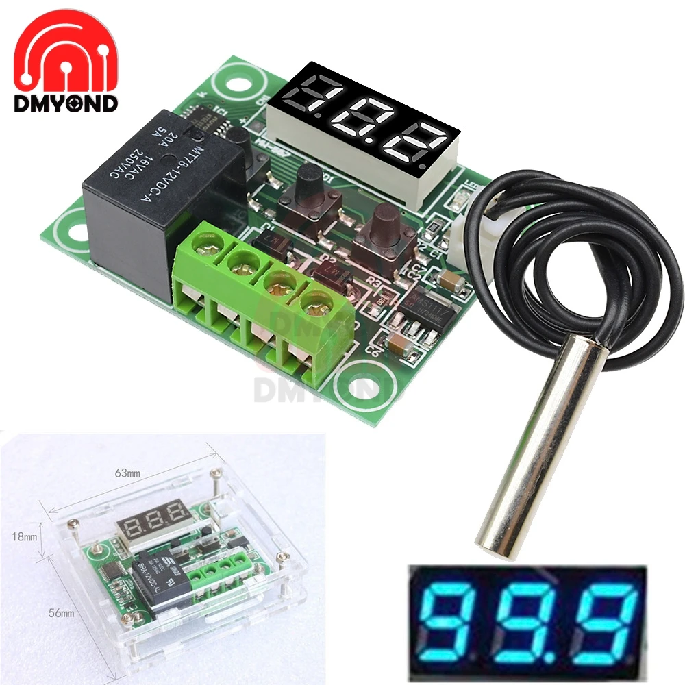DC 12 В 20A реле W1209 цифровой термостат контроль температуры датчик синий прозрачный акриловый чехол Комплект для водонагревателя