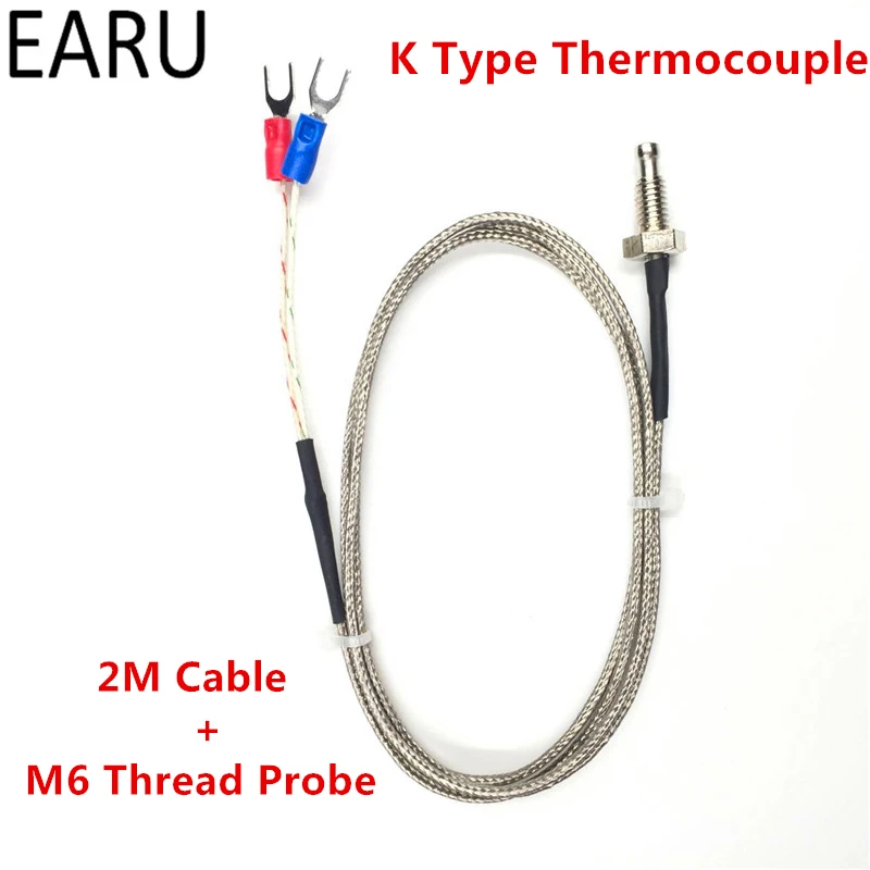 1 шт. нить M6 винт зонда Температура Сенсор термопары K Тип диапазон 0-400 градусов 2 м длинный кабель для PID контроллер термометр