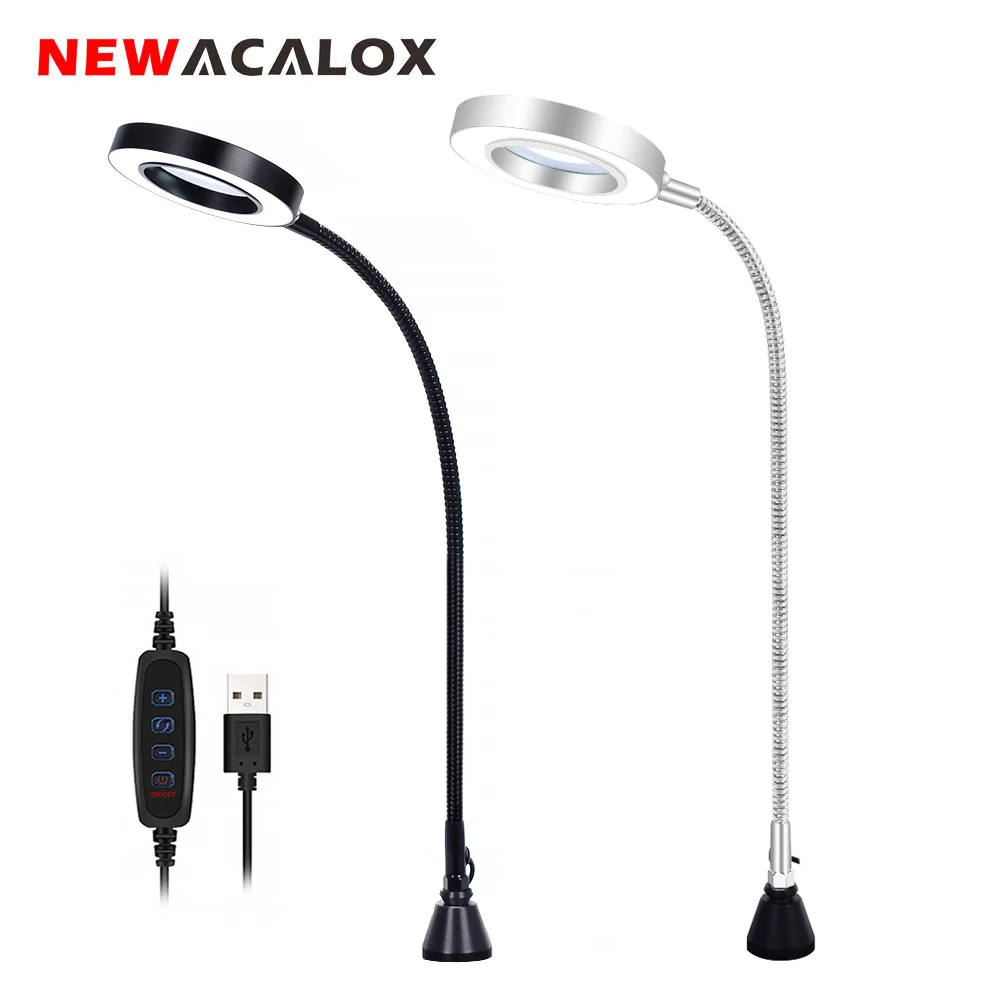NEWACALOX USB Сильный магнитный 3X увеличительное стекло светодиодный свет с подсветкой Лупа Гибкая рука для чтения верстак пайки