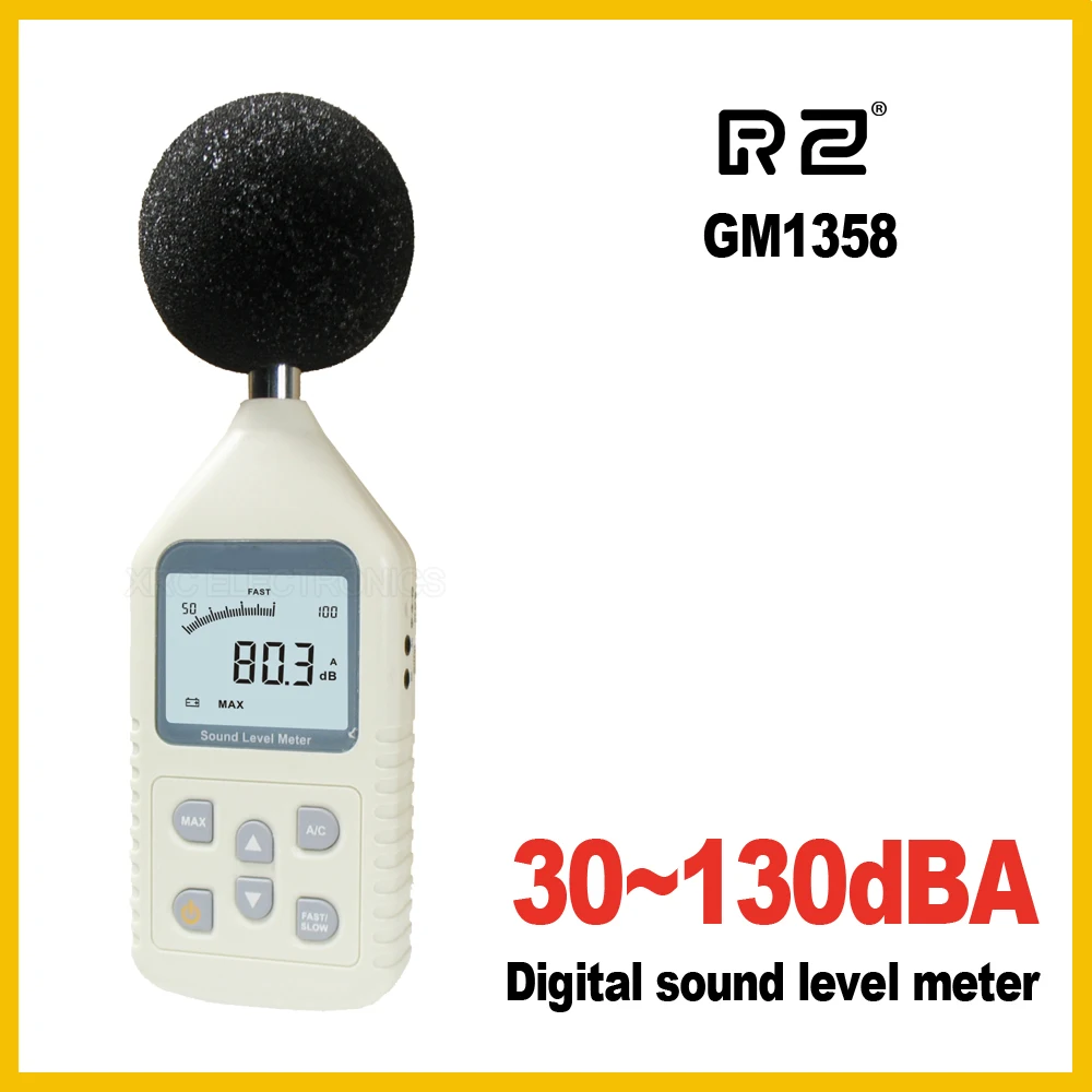RZ GM1358 30-130dB цифровой измеритель уровня звука метров шумомер в децибелах ЖК-дисплей A/C быстрый/медленный дБ экран новый