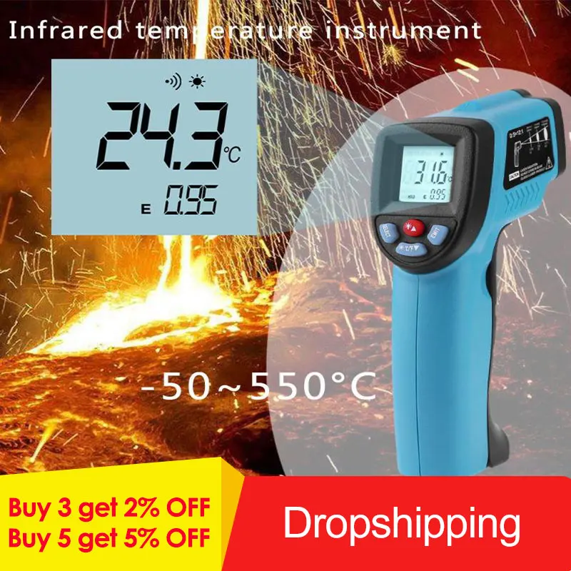 GM550 цифровой инфракрасный лазерный термометр Температура пирометр в форме пистолета аквариум высокий/низкая Температура сигнализации-50 ~ ...