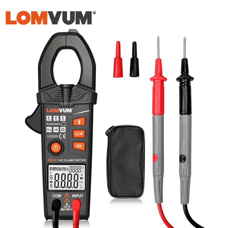 LOMVUM смарт-клещи цифровой Бесконтактный 6000 600A AC DC Ток Напряжение Ture Rms NCV мультиметр Частота светодиодный фонарик