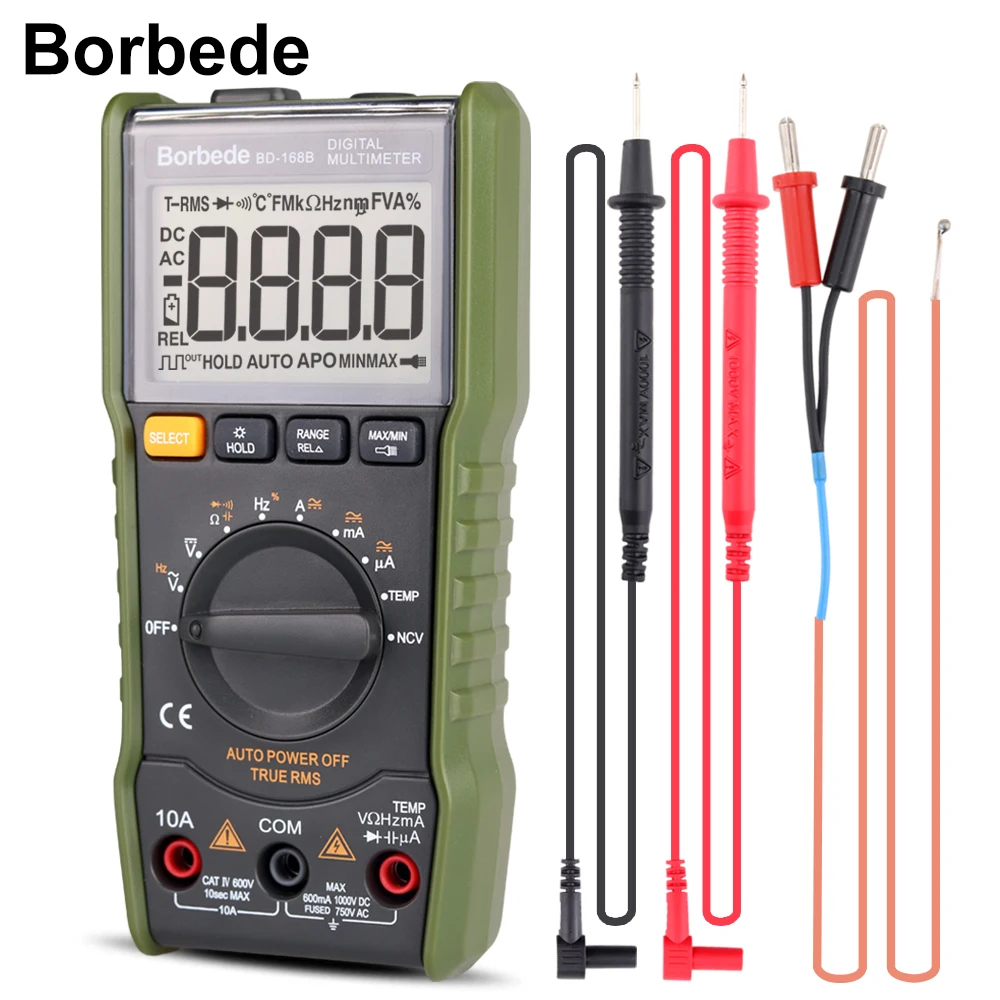 Цифровой мультиметр Borbede 168B с сопротивлением емкости переменного тока 6000 шт. мини-тестер температуры