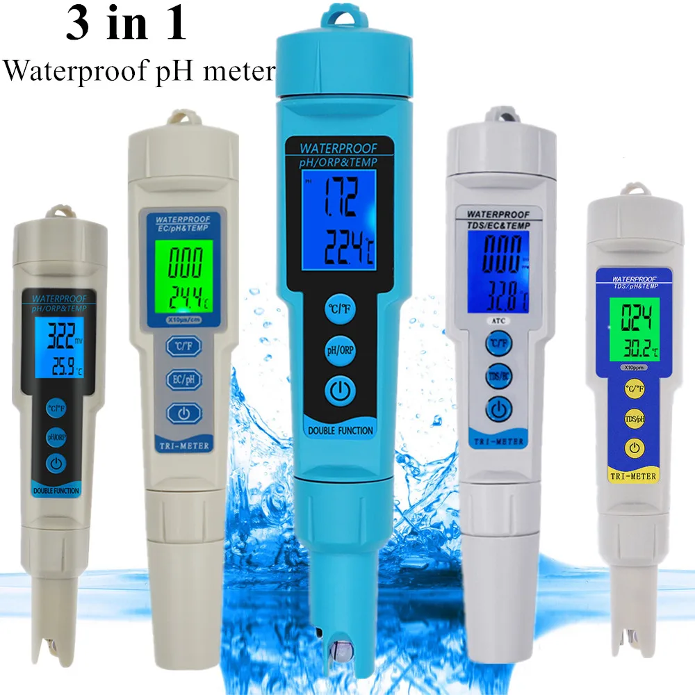 3 в 1 Водонепроницаемый рН-метр pH ORP TEMP TDS тестер с подсветкой мульти-параметр Профессиональный трехметровый монитор качества воды