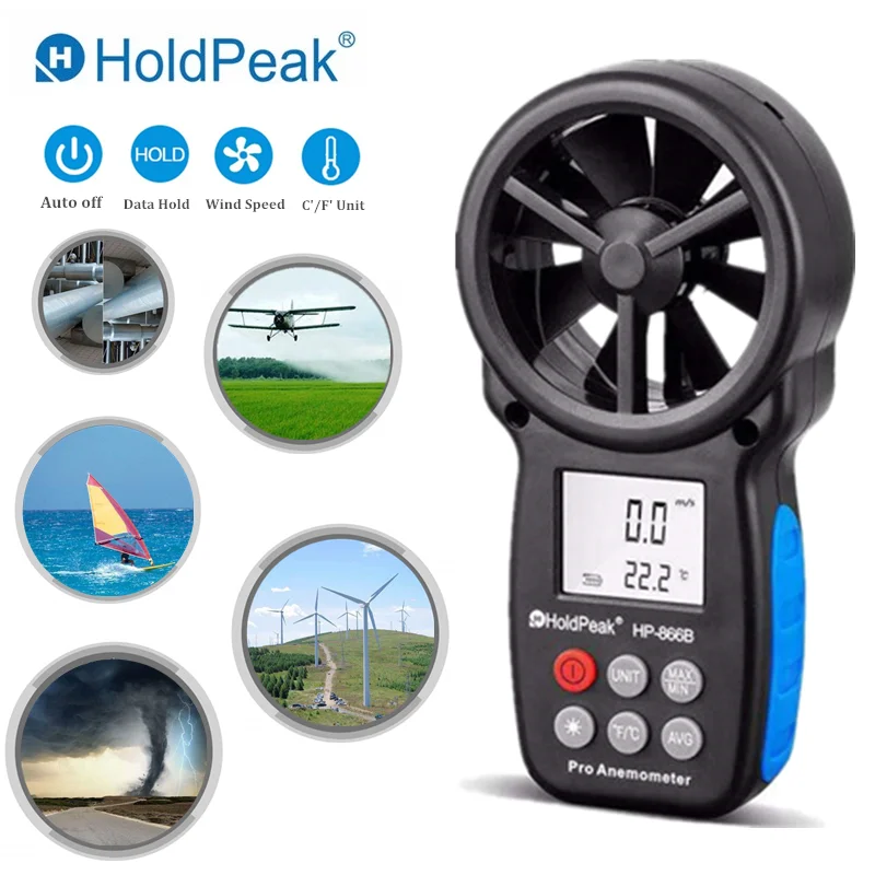 HoldPeak HP-866B Anemometro цифровой анемометр измерения скорости ветра устройство ветра ручной с сумкой для переноски