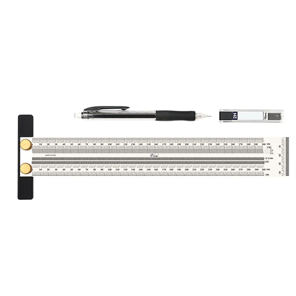 Высокоточная шкала линейка Т-типа отверстие линейка из нержавеющей стали деревообрабатывающий Scribing Mark линия Калибр плотник измерительный ...