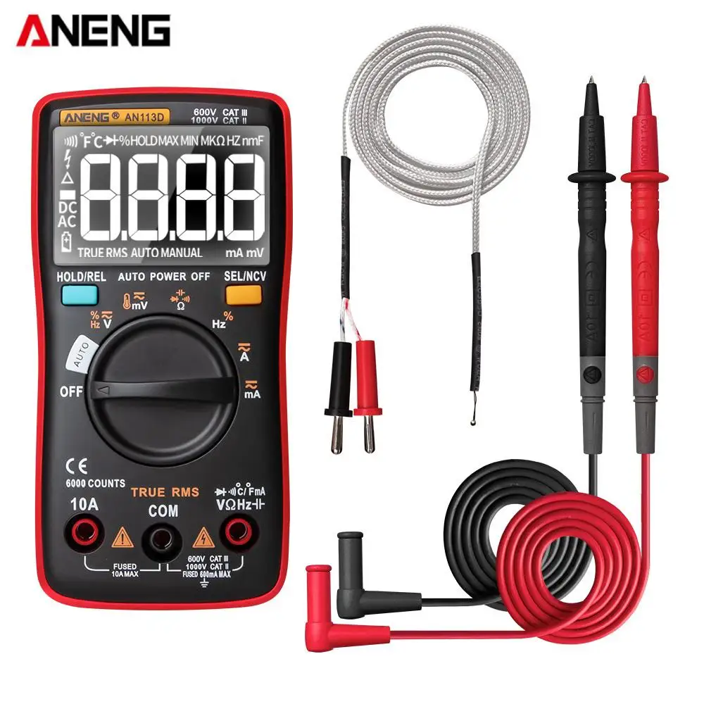 ANENG AN113D Интеллектуальный автоматический измерительный Цифровой мультиметр True-RMS 6000 отсчетов сопротивление тестер целостности диодов