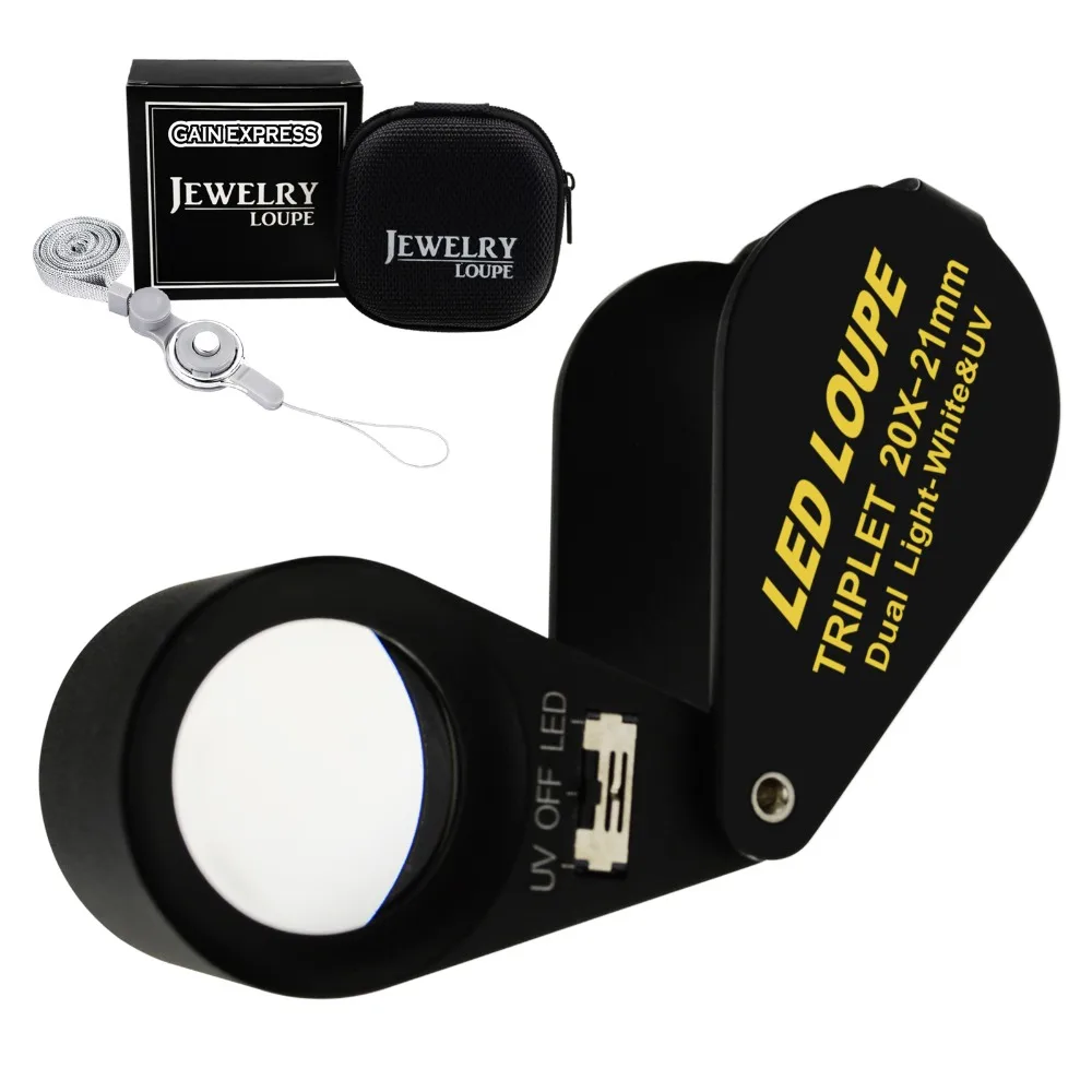 20x лупа 21 мм увеличительное стекло 6 светодиодный свет и УФ черный рамки Ахроматический триплетная линза Hobbyist монетоприемник искусств